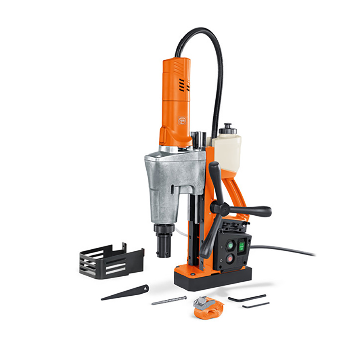 功率強勁、沖程大的兩擋經濟型磁力鉆帶有 MK3 工具固定夾座,鉆削深度達 75 mm,具備基本功能,適用于在車間和施工現場進行空心鉆孔和麻花鉆孔。
